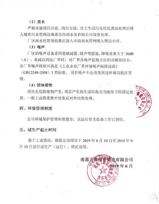 年產(chǎn)300噸精密合金鑄件生產(chǎn)項(xiàng)目試生產(chǎn)信息公示